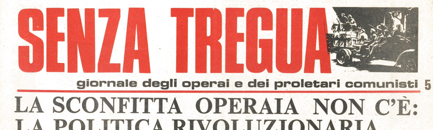 The experience of Senza Tregua, a revolutionary working class organisation, emerged out of a phase of workers’ struggle in Italy that was characterised by a severe crisis: high levels of inflation and an attempt to undermine workers’ power in workplaces through restructuring and job cuts, co-managed by left-wing parties and mainstream unions that were supposed to represent the working class. Out of the defeat of both the traditional and the extra-parliamentarian leftist organisations, workers’ political committees emerged in some of the major factories and industrial centres. These committees extended the struggle from the factory into the wider social arena through ‘proletarian rounds’, e.g. by occupying houses, enforcing lower transport or energy prices, escorting sacked workers back to their workplace, shutting down smaller factories where management ran weekend or overtime shifts while general unemployment was on the rise.