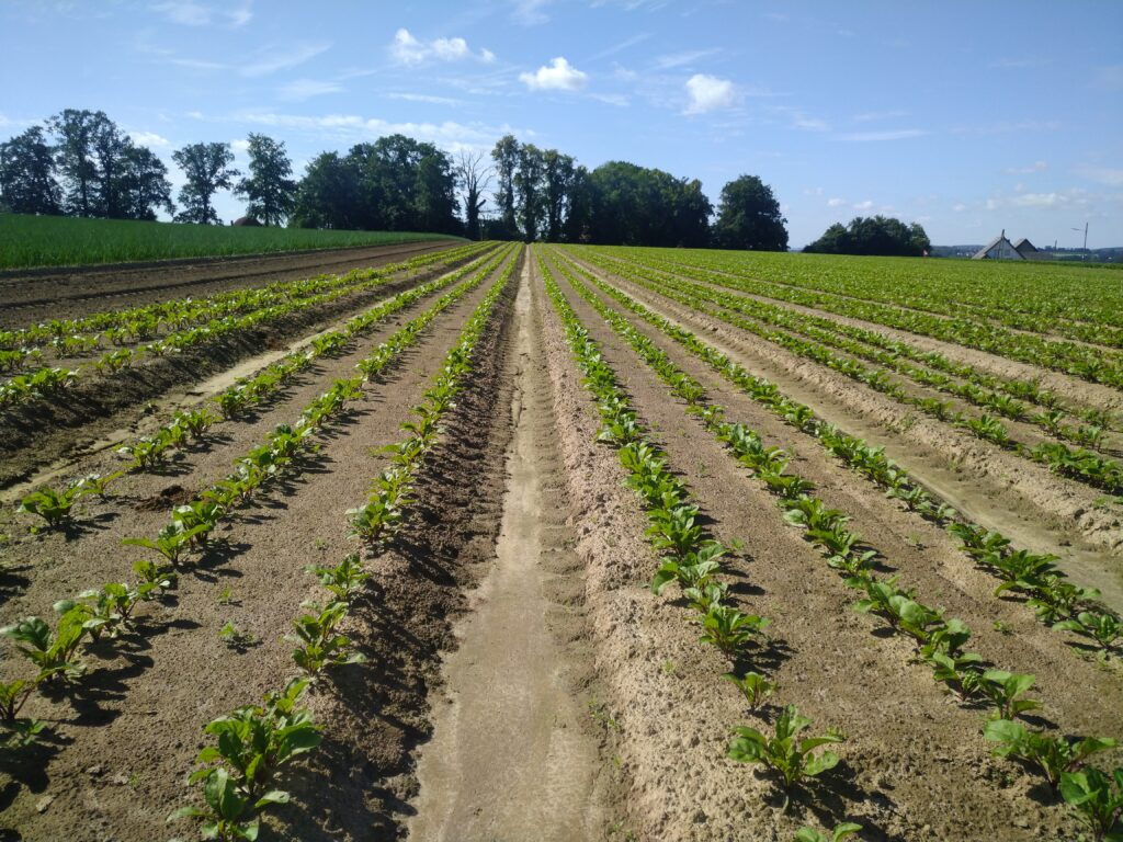 The bed lengths are standardised so that work processes and equipment are all adapted to this specific length. This means that a bed is always 100 metres long and each set of vegetables that is sown/planted at once always covers a gross area of approx. 1,000 square metres = 6 beds, each 100 metres long, with a path next to it (of course there are a few exceptions). Standardised bed lengths make certain work processes easier, such as finding insect protection nets, irrigation materials and cover fleeces in the right size. This also makes it easier to calculate the required amount of seeds or nursery plants, estimate the expected yield and make the corresponding calculations for weekly wholesale offers.